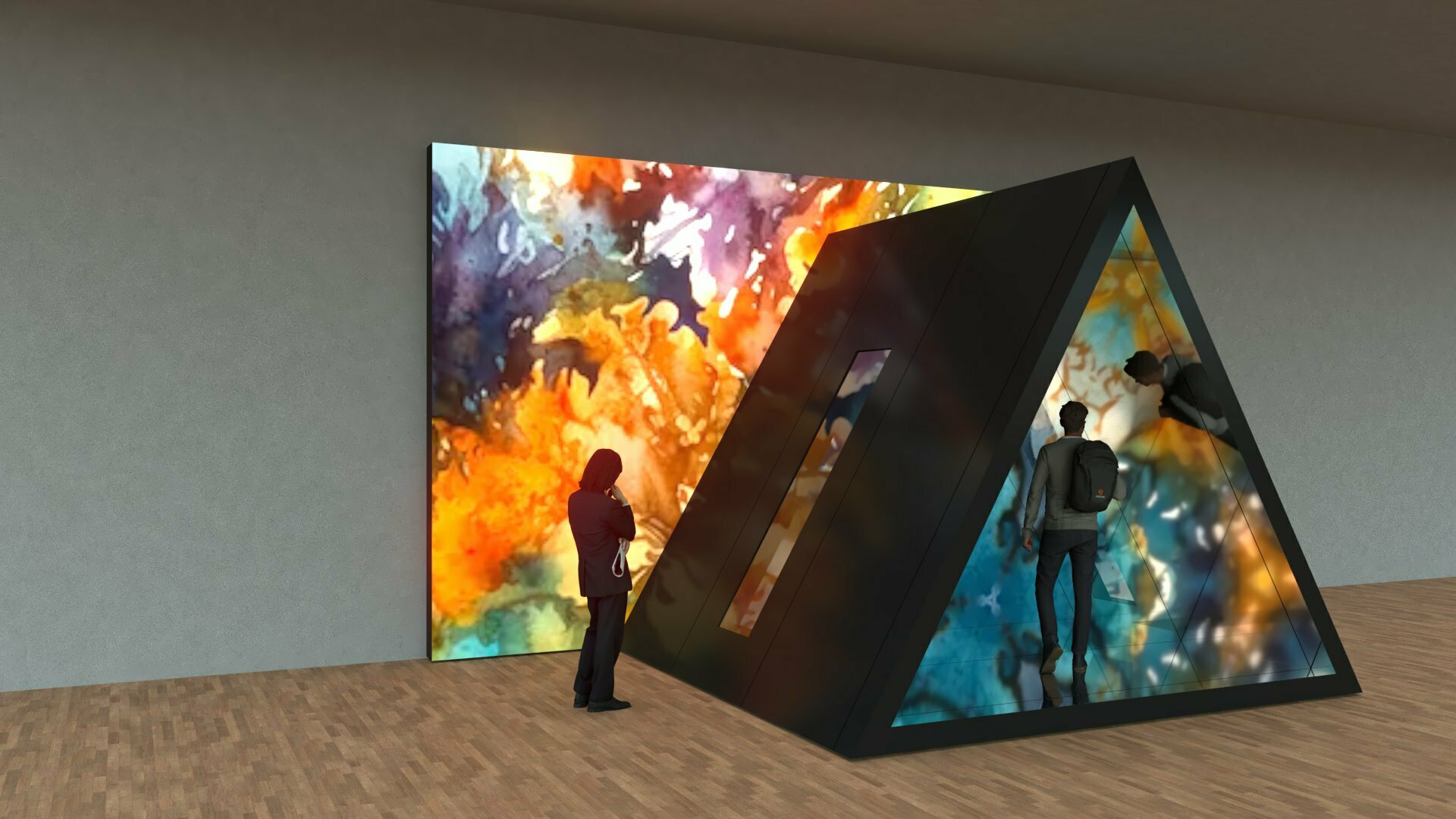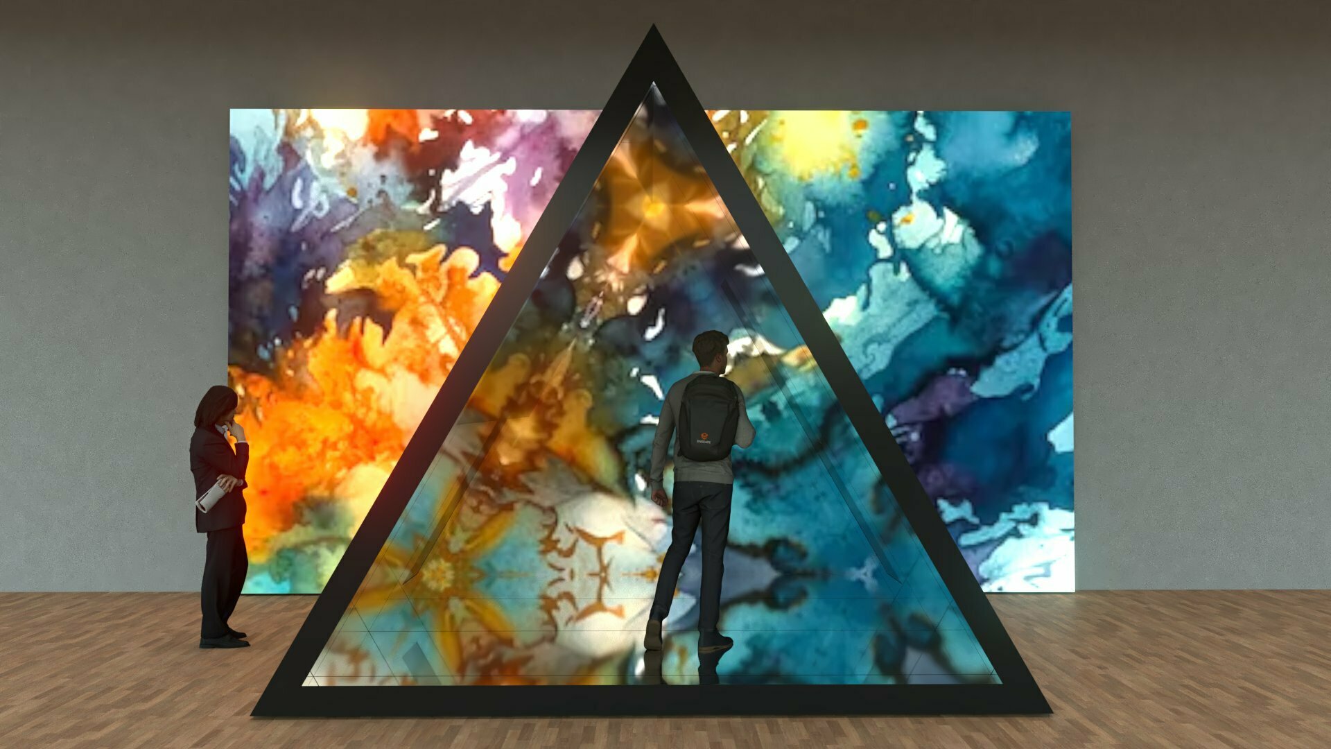 Visitors who wish to participate will sit at the end of an immersive kaleidoscope tunnel, facing an LED screen. They will wear a neural headset that captures real-time brain activity, detecting their emotional responses.